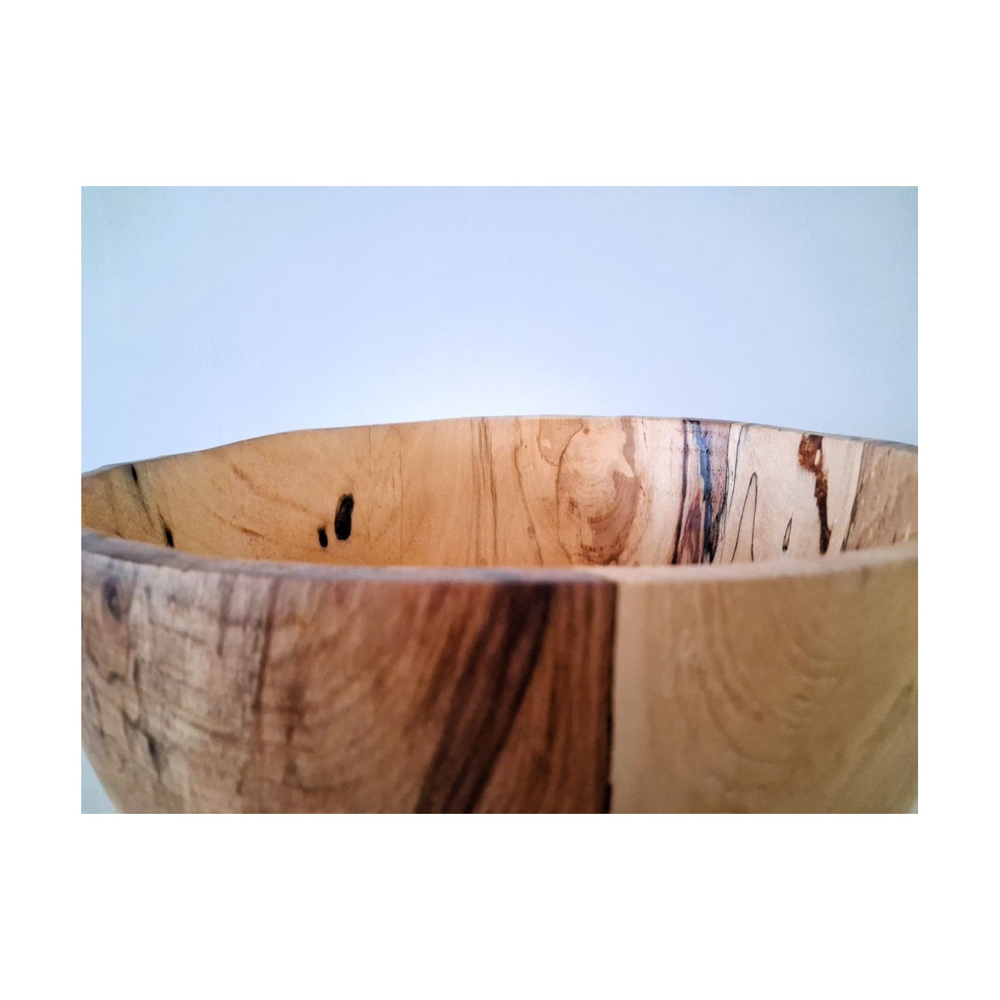 Tournée dans un hêtre fortement échauffé, cette coupe généreuse présente des bords irréguliers qui renforcent son charme rustique.